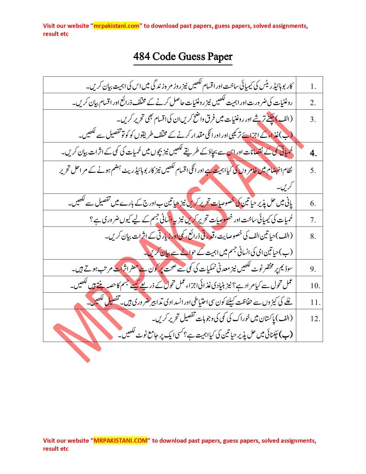 484 Code Latest Guess Paper 2025 - MR PAKISTANI
