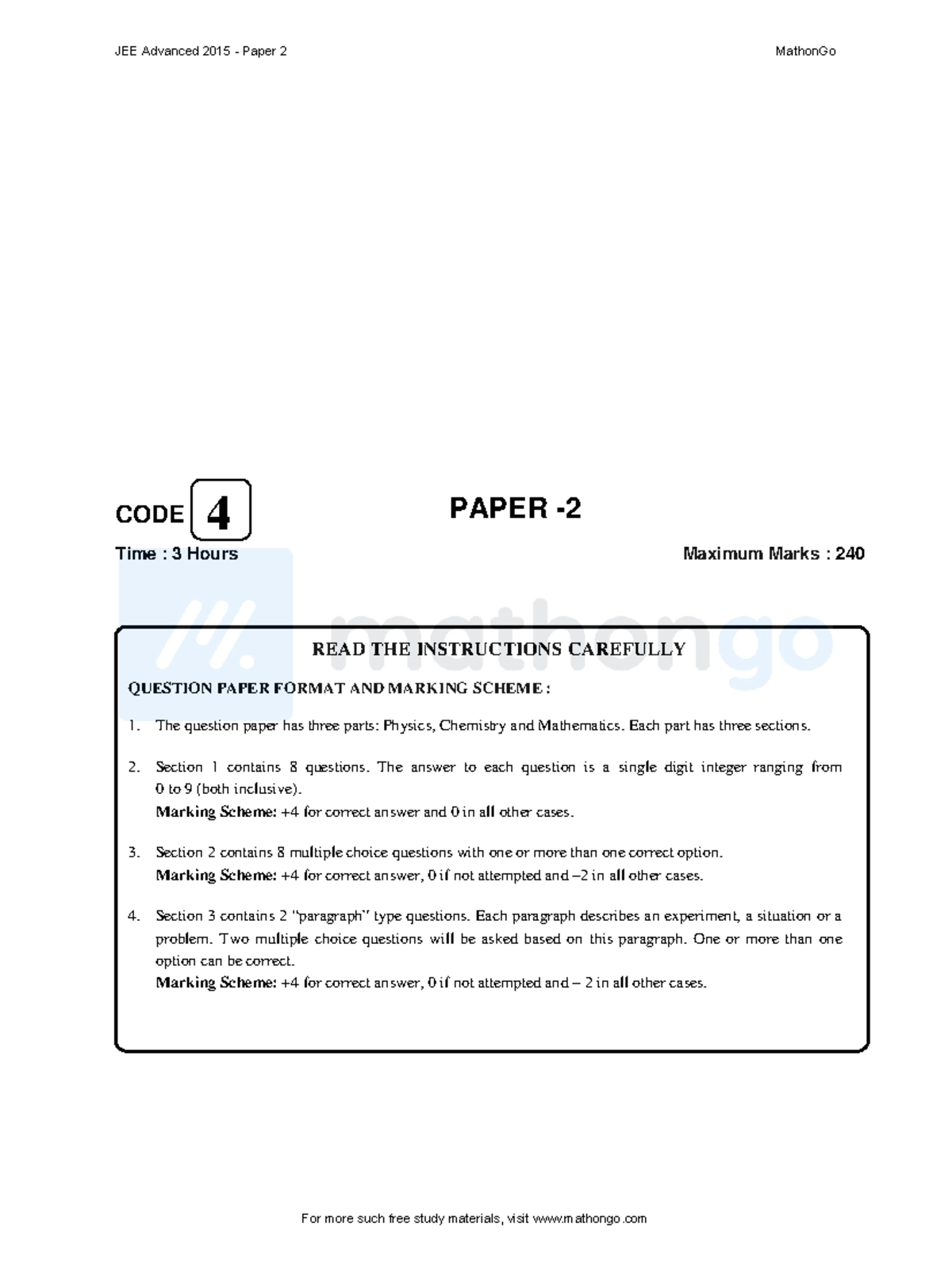 JEE Advanced 2015 Paper 2 Mathon Go - CODE PAPER - Time : 3 Hours ...