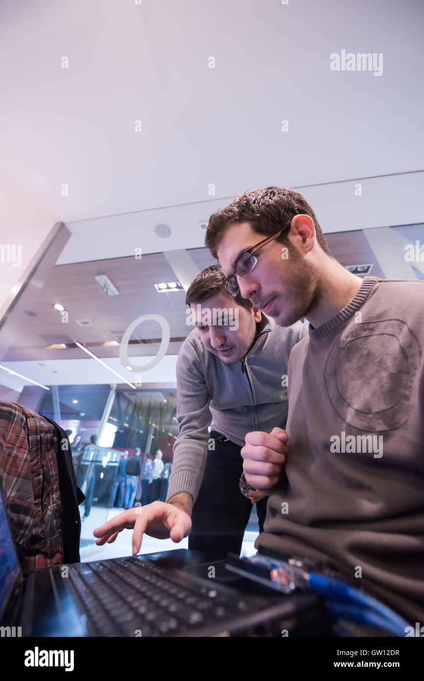 young computer technology students on code programming class have ...