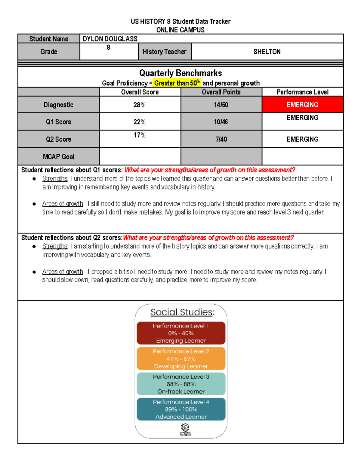 US HISTORY 8 Student Data Tracker: Dylon Douglas SY 26 - Studocu