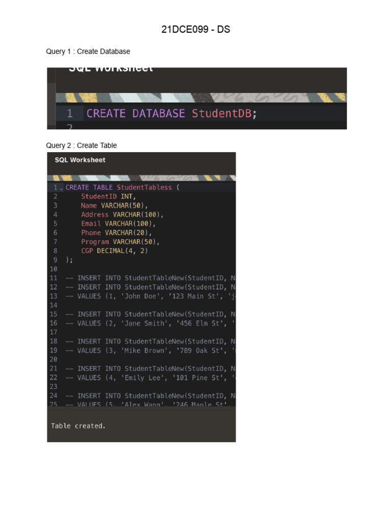 SQL Queries for Create a student table and insert data by G Krishna ...