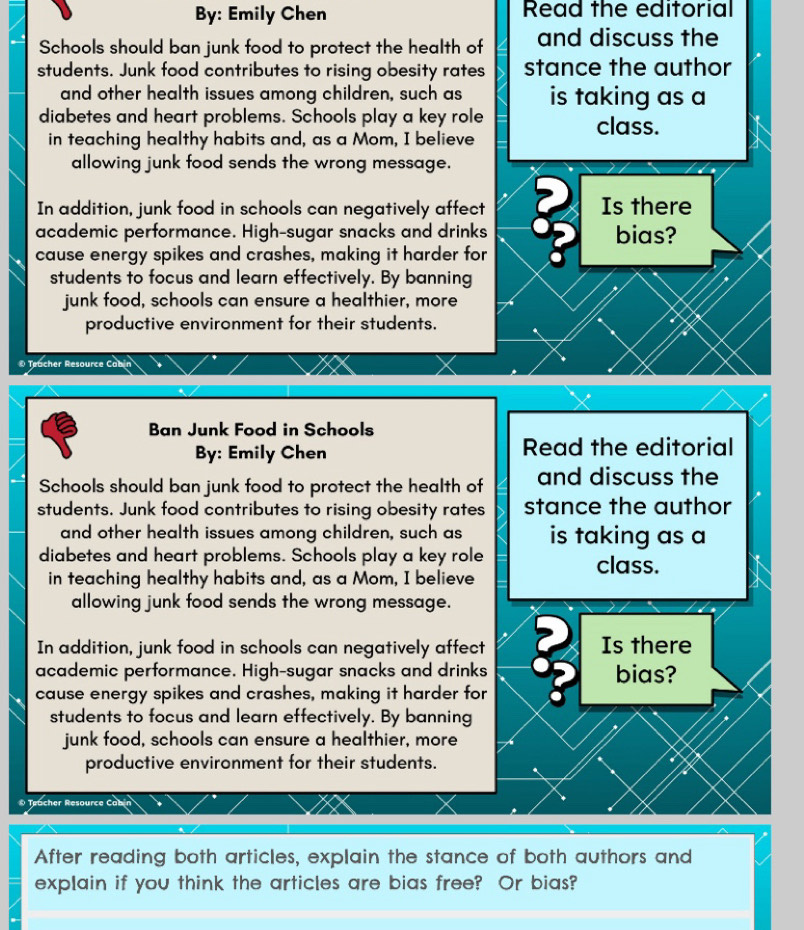 Solved: By: Emily Chen Read the editorial Schools should ban junk food ...