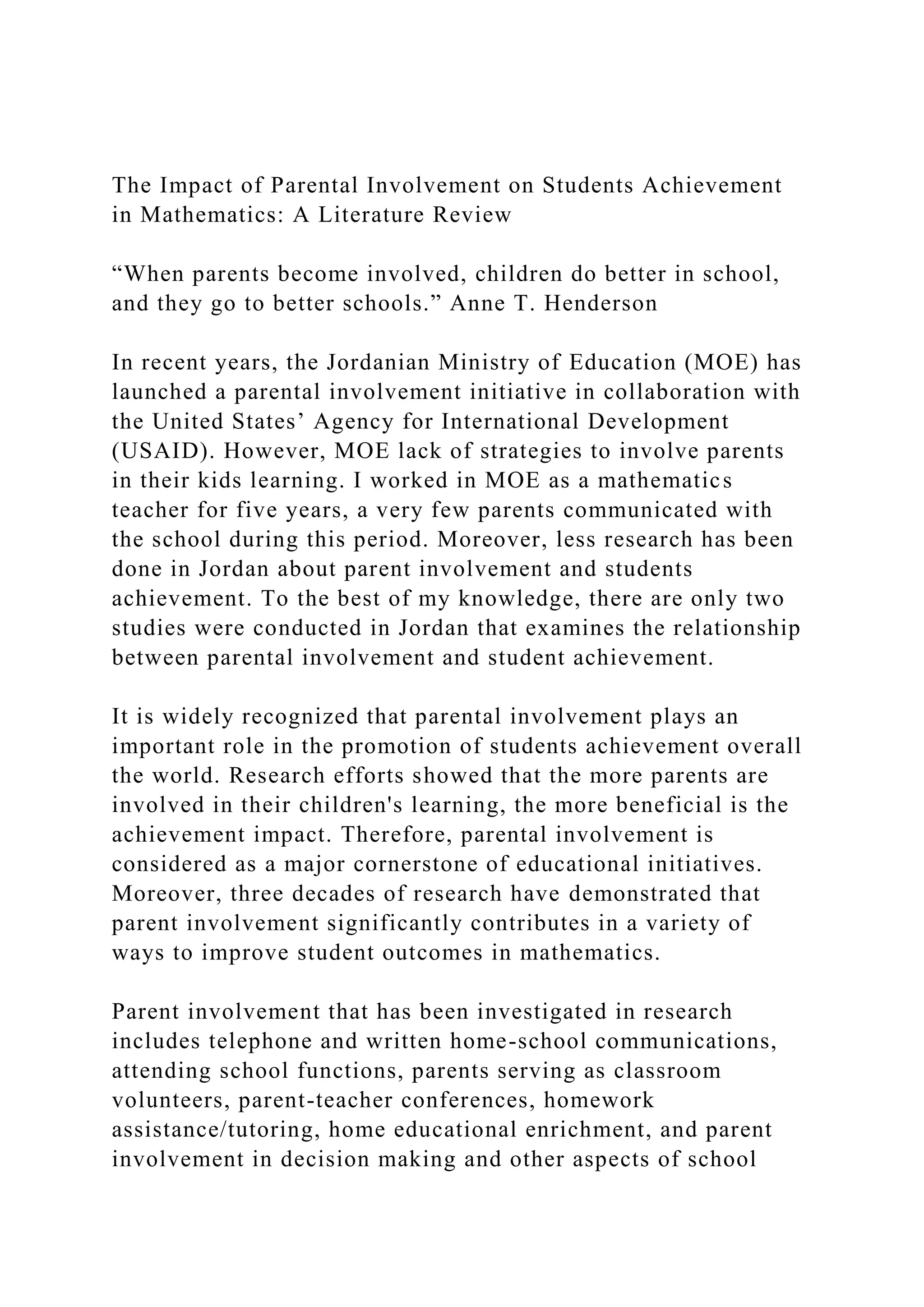 The Impact of Parental Involvement on Students Achievement in Math.docx