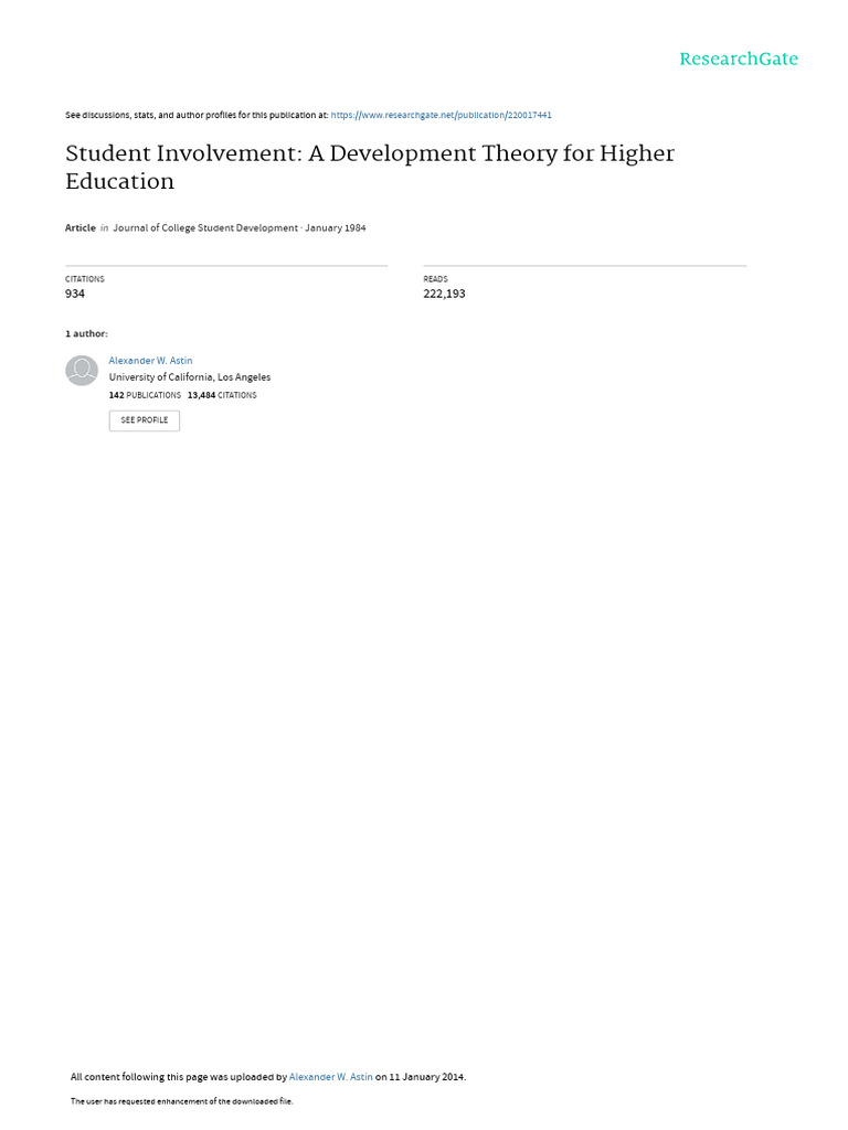 (PDF) Student Involvement: A Development Theory for Higher Education
