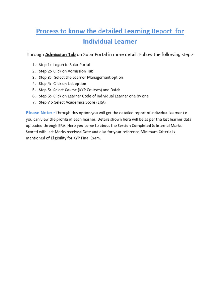 Process to Know the Detailed Learning Progress of Individual Learner | PDF