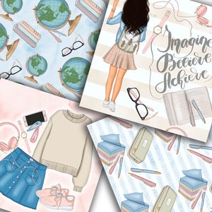 School Digital Paper, COMMERCIAL USE, Student Pattern, Printable Paper ...