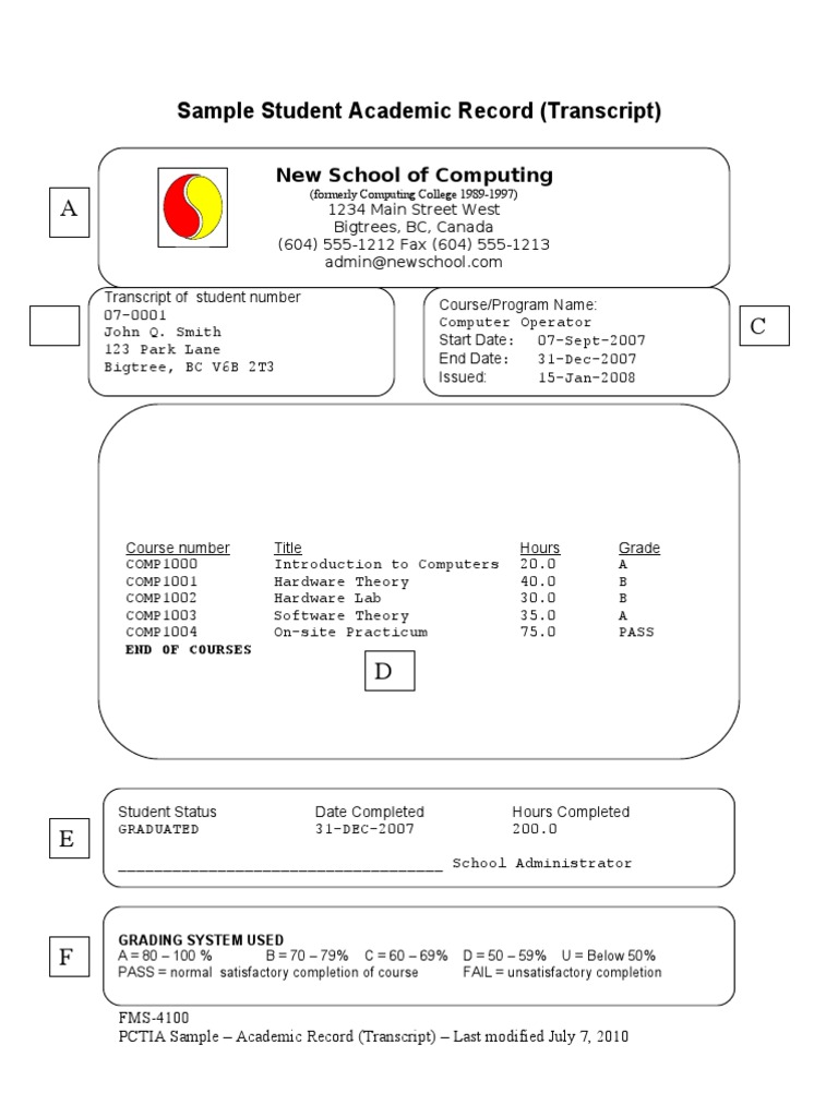 Sample Student Academic Record Transcript INS_160_065 | Seal (Emblem ...
