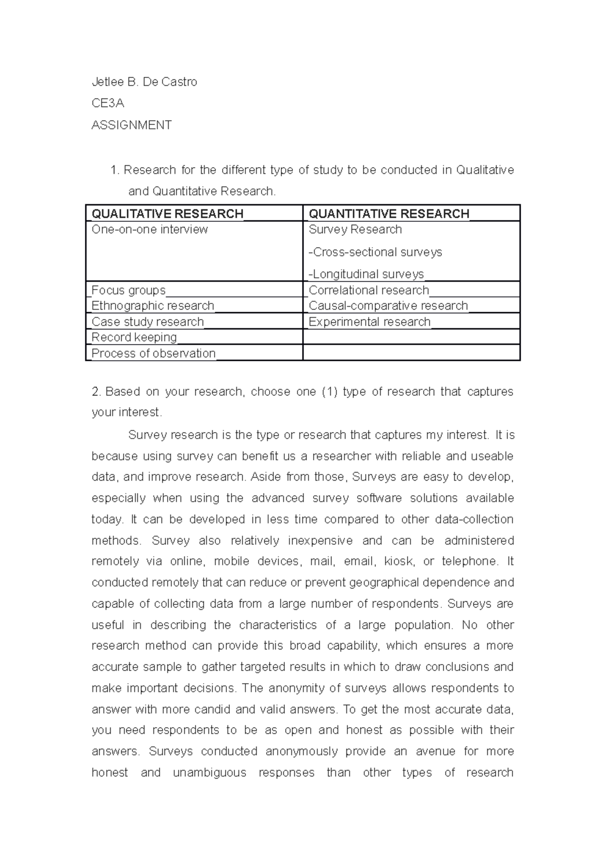 Example of Quantitative and Qualitative of Research - Jetlee B. De ...