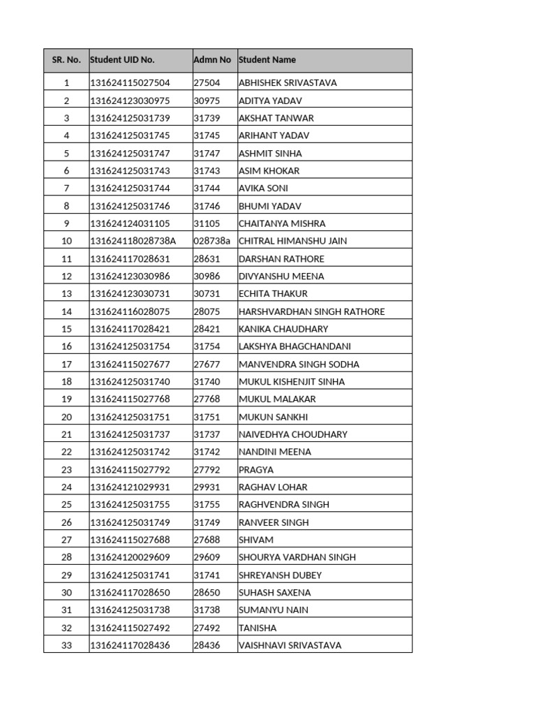 Student Name With Uid No. | PDF