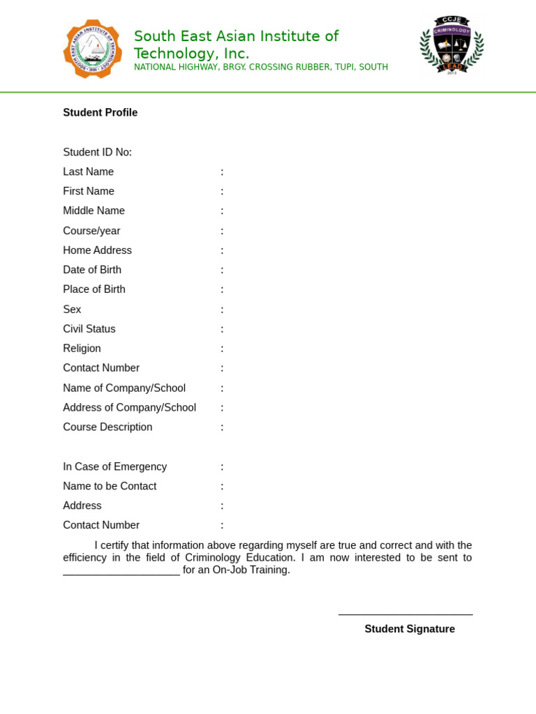 Student'S Profile: 2X2 I.D. Photo | PDF