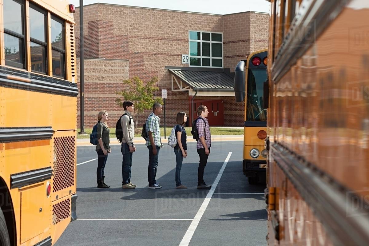 High school students queuing for school bus - Royalty-free Stock Photo ...