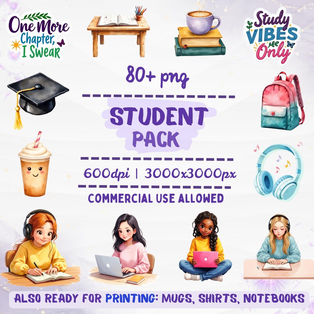 Student Sticker & Clipart Bundle – Printable High‑res PNG, Transparent ...