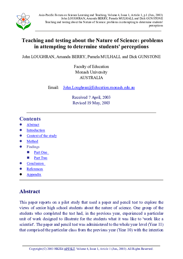 (PDF) Teaching and testing about the nature of science: problems in ...