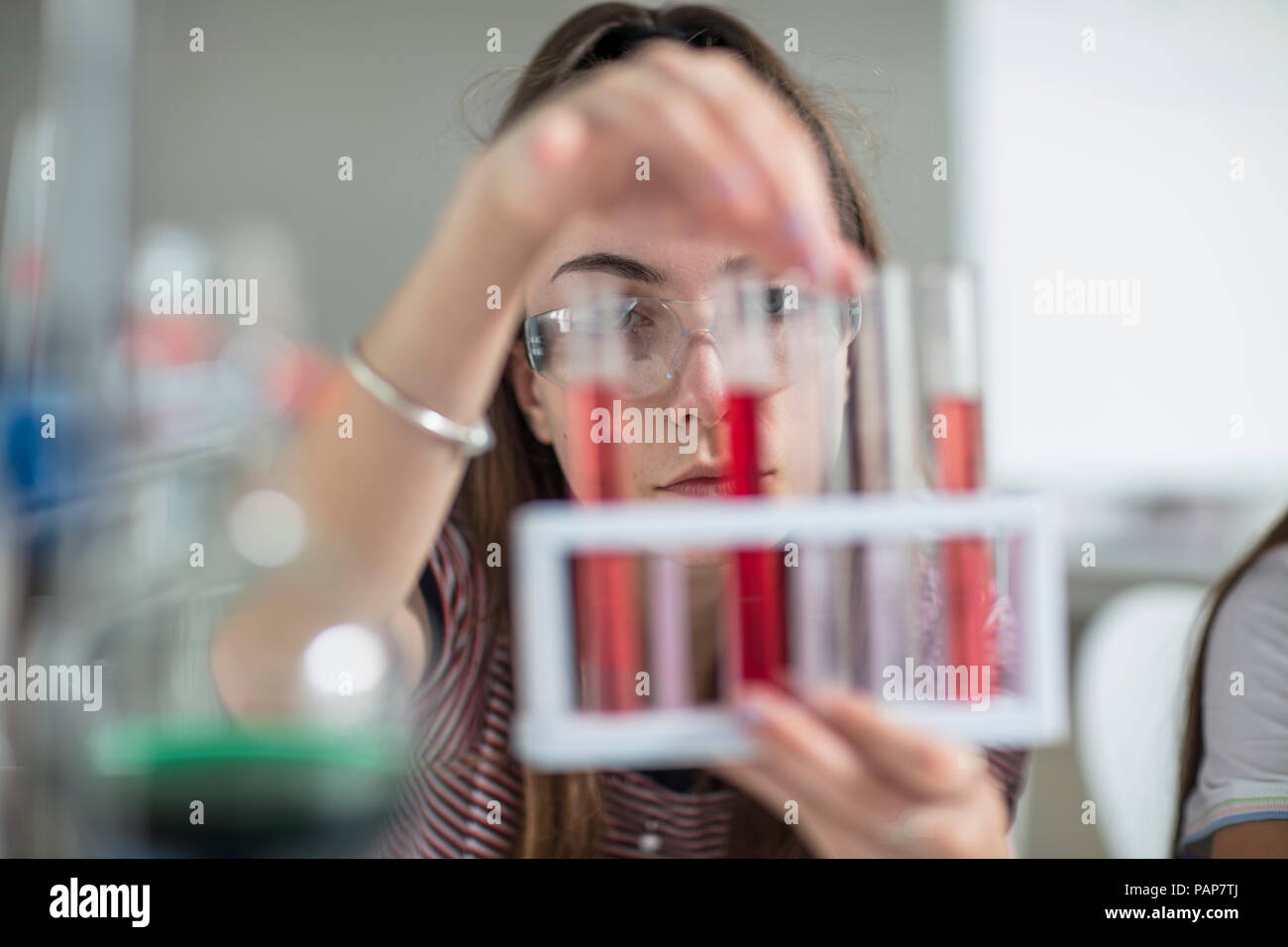 Student in science class experimenting with test tubes Stock Photo - Alamy