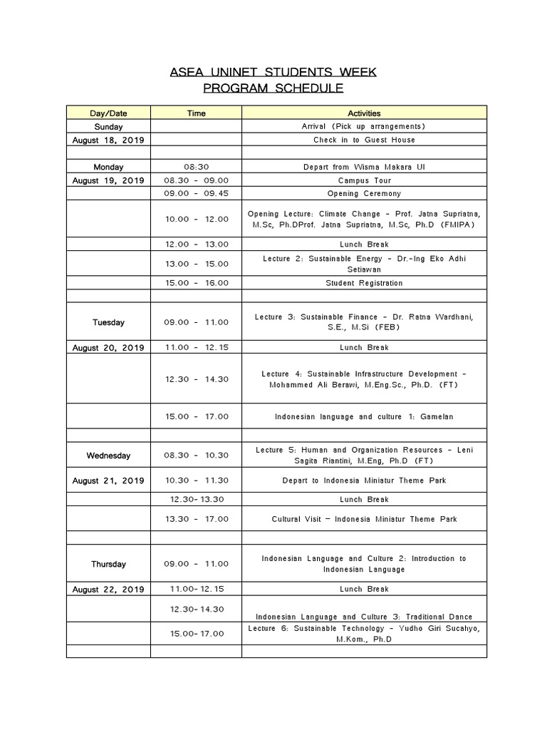 Asea Uninet Students Week Program Schedule | PDF