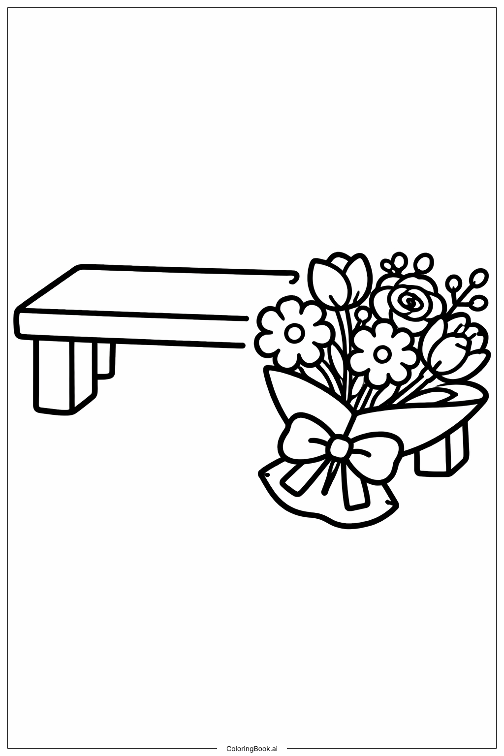 Bouquet Of Flowers By A Bench Coloring Page (Free PDF&PNG Printable)