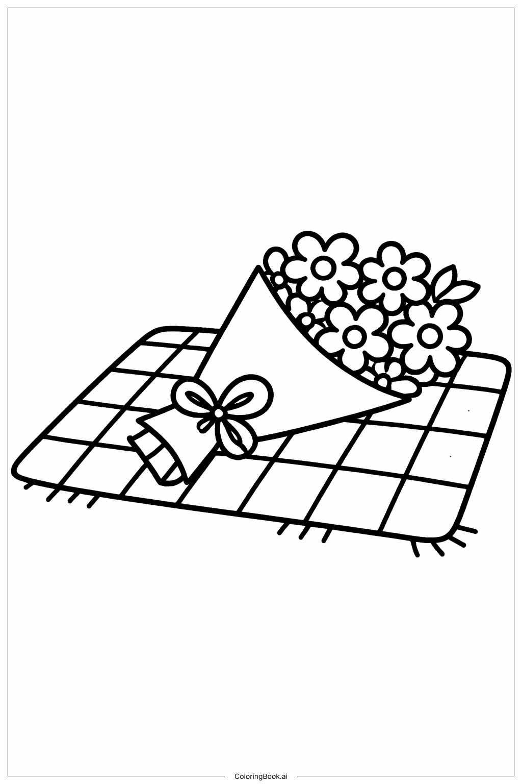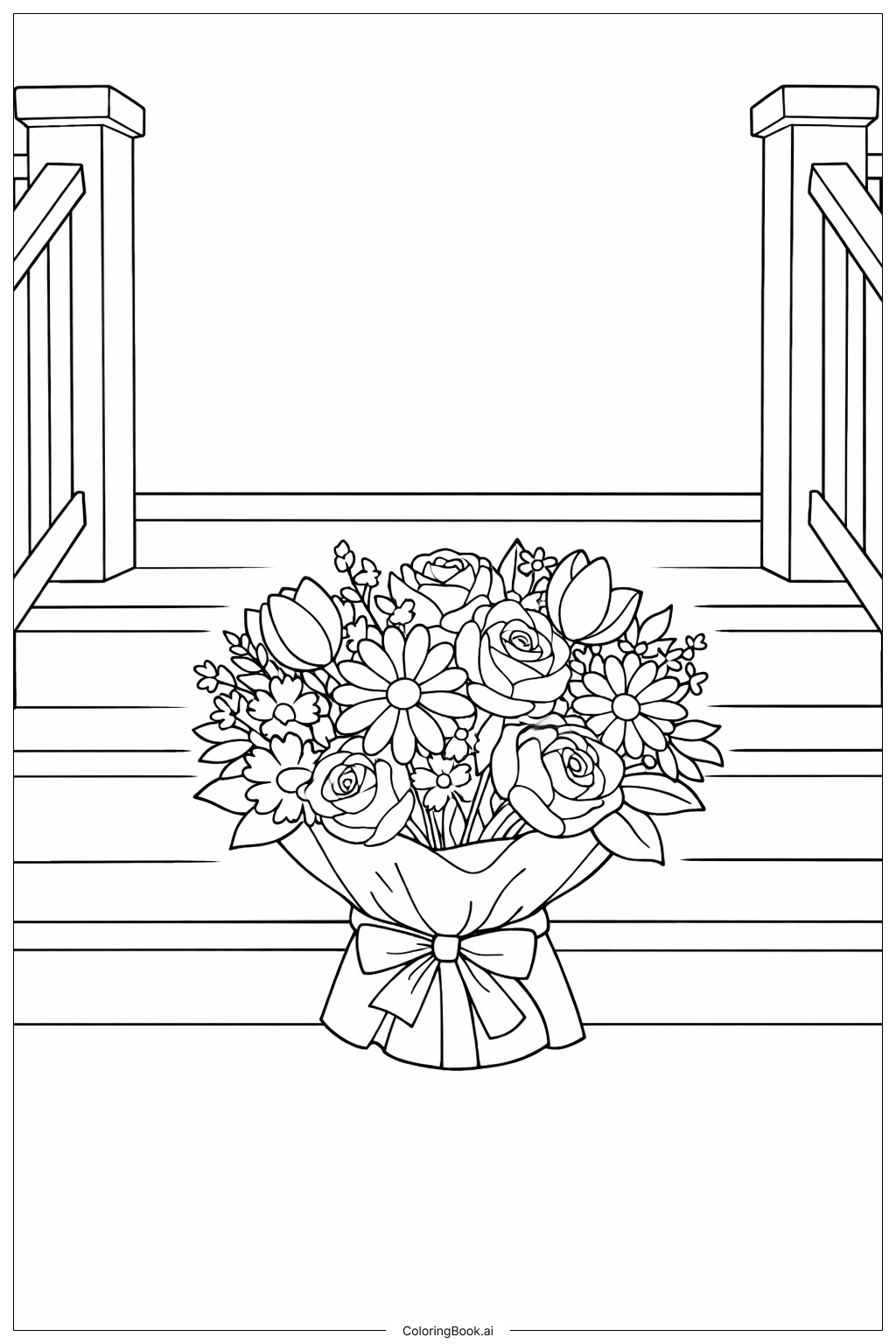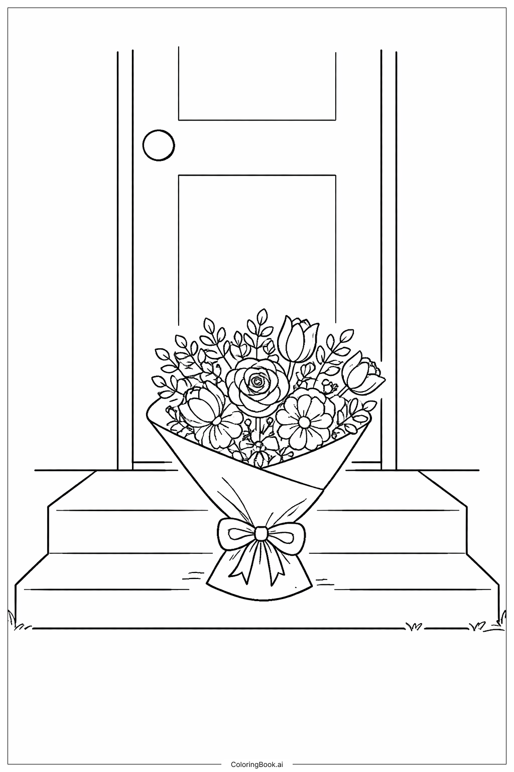 Bouquet Of Flowers On A Doorstep Coloring Page (Free PDF&PNG Printable)