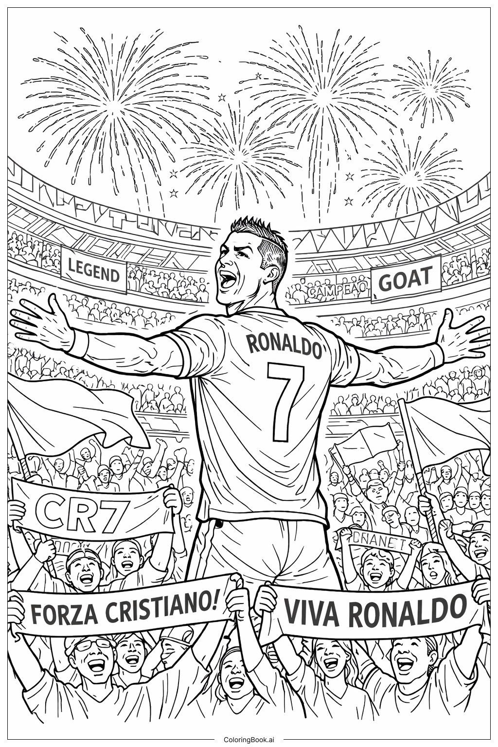 Cristiano Ronaldo Fireworks Celebration Coloring Page (Free PDF&PNG ...