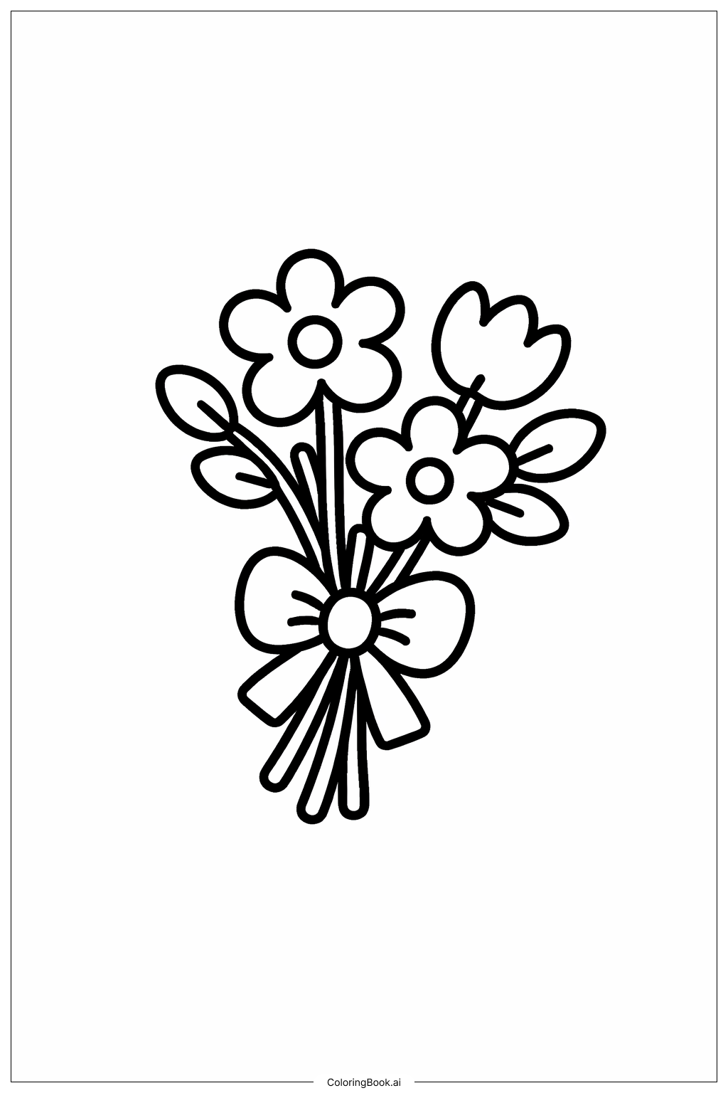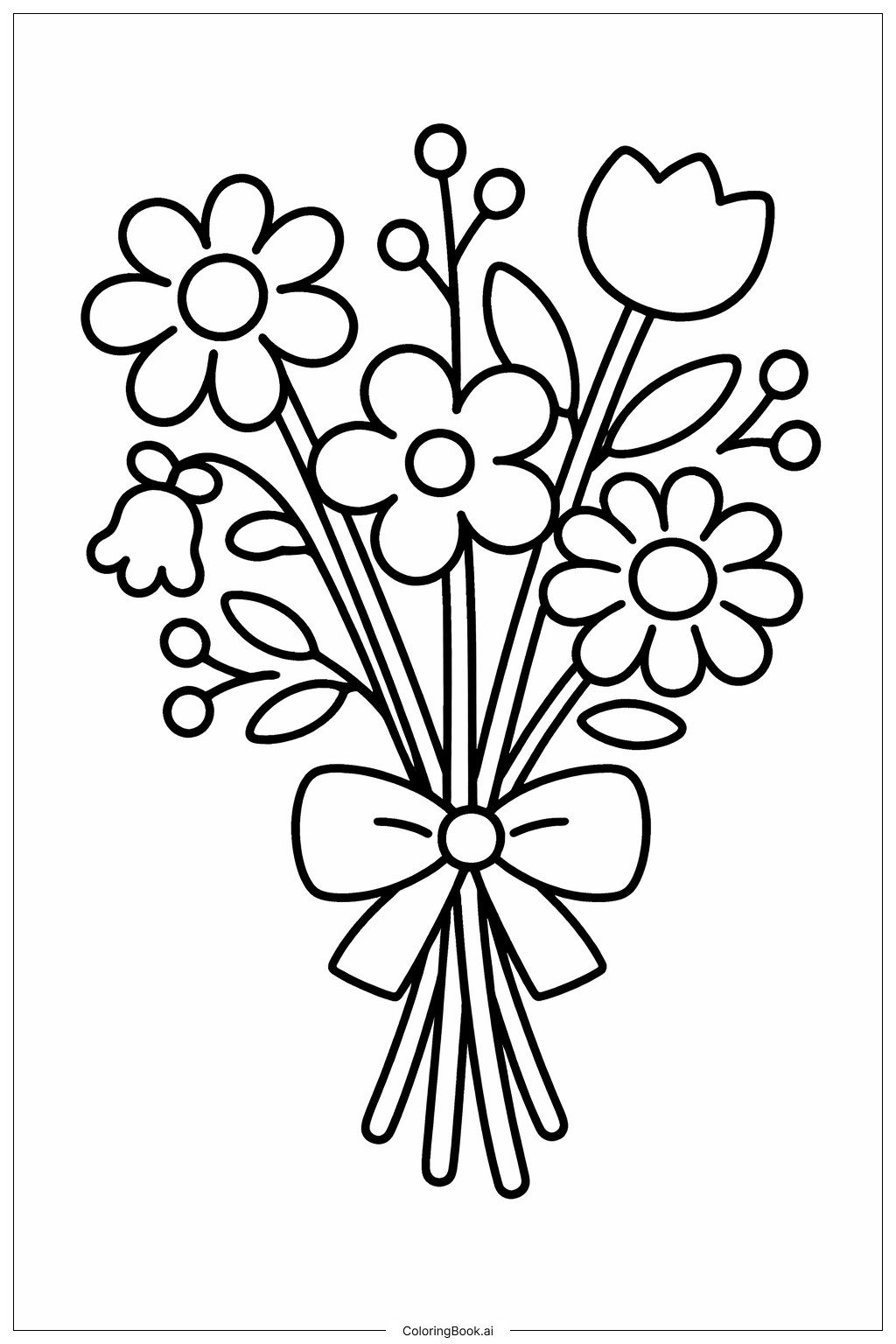 Simple Wildflower Bouquet Coloring Page (Free PDF&PNG Printable)