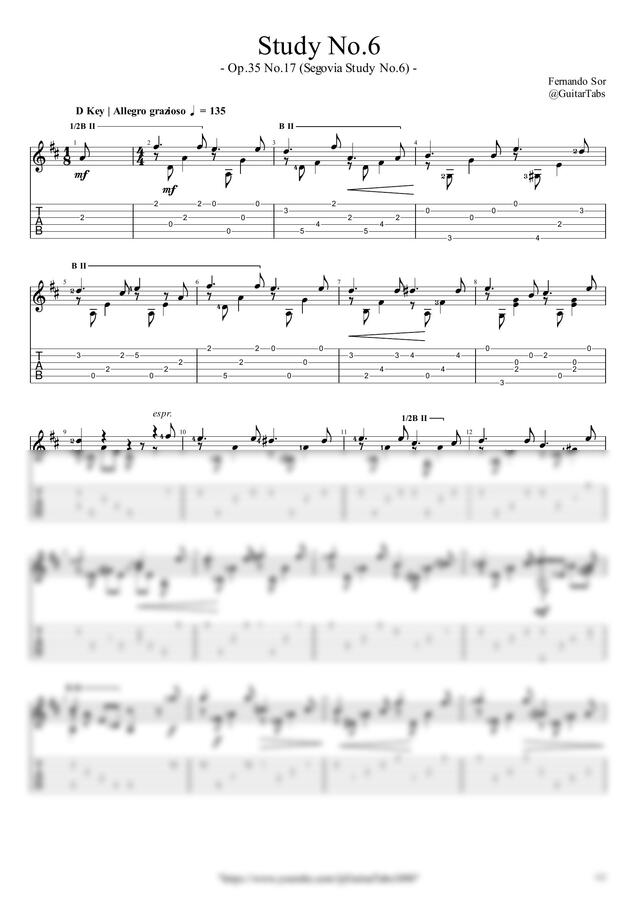 악보 > F. Sor - Study No.6(Op.35 No.17) | GuitarTabs