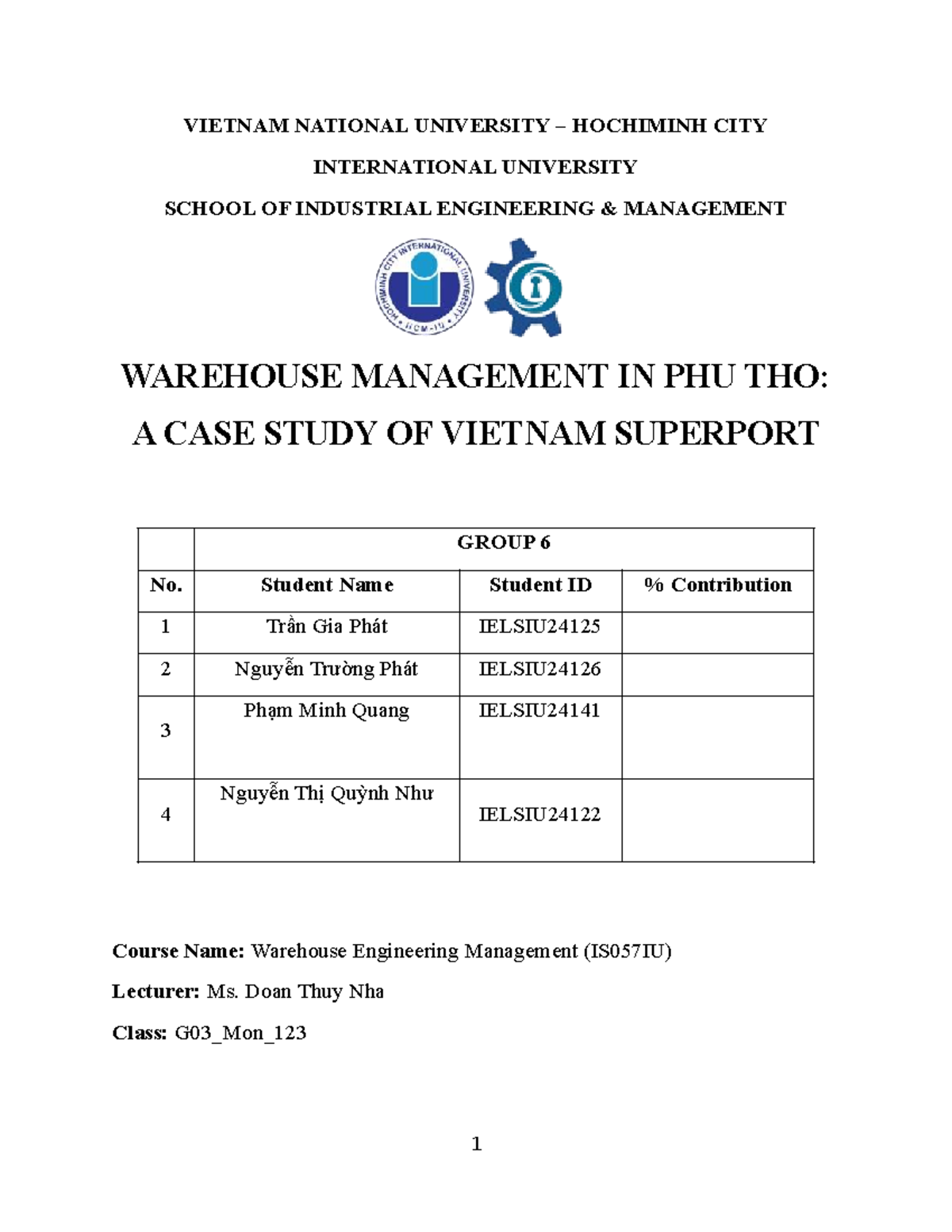 Case Study on Warehouse Management in Phu Tho (IS057IU) - Studocu