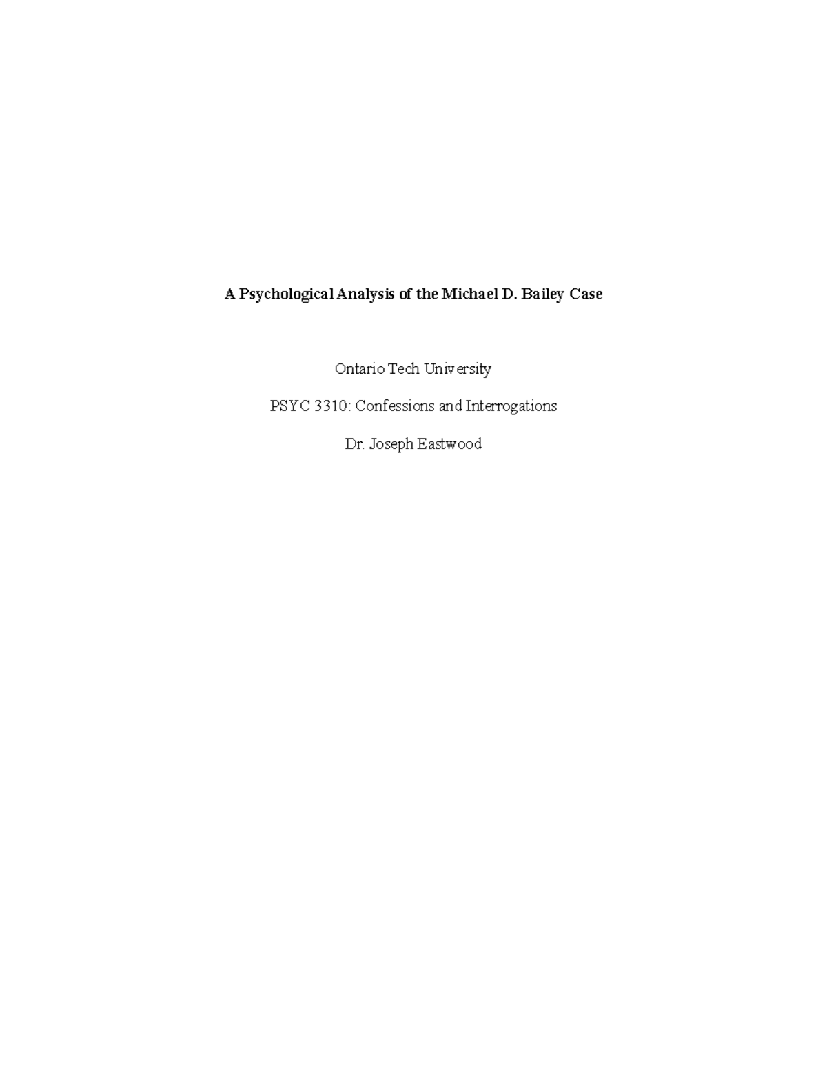 PSYC 3310: Analyzing the Michael D. Bailey Interrogation Case Study ...