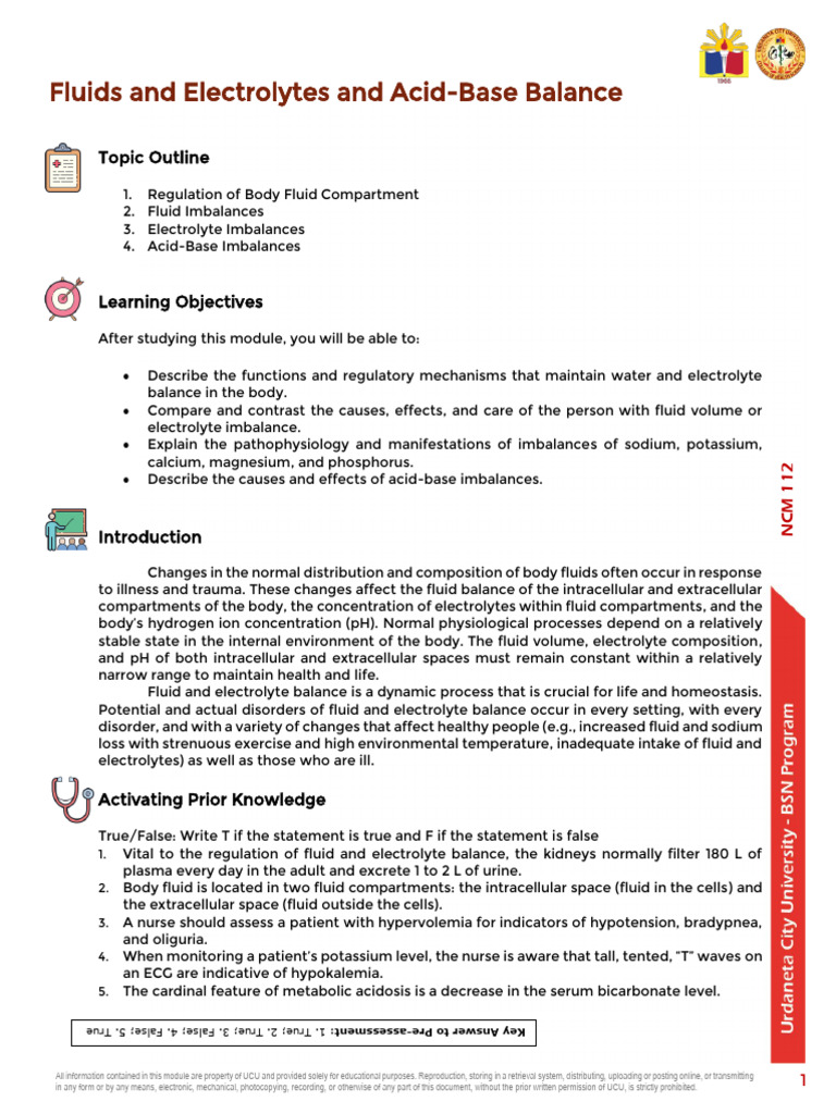 Study Guide 9 Fluids Electrolytes - Acid Base Balance | PDF ...