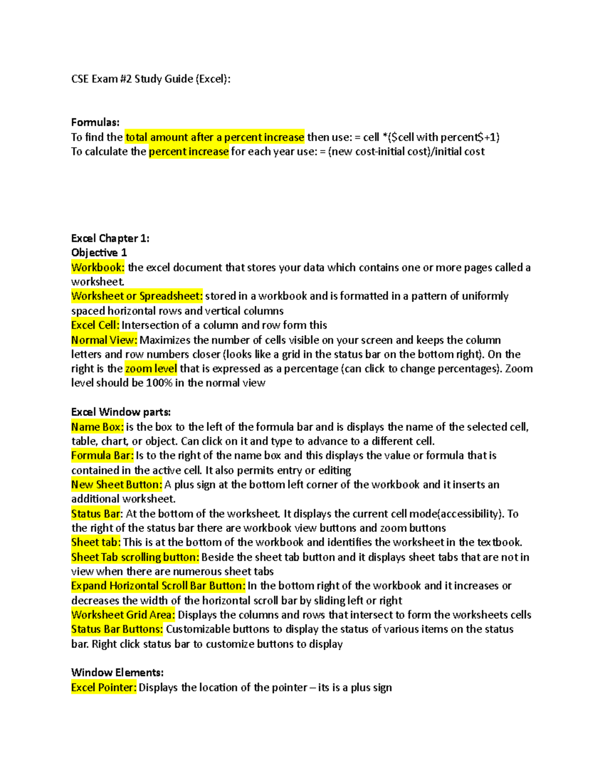 CSE Excel Study guide - CSE Exam #2 Study Guide (Excel): Formulas: To ...