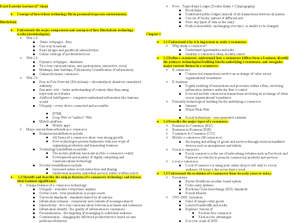 MGT 280 midterm study guide - Excel Exercise Lecture (1st class ...