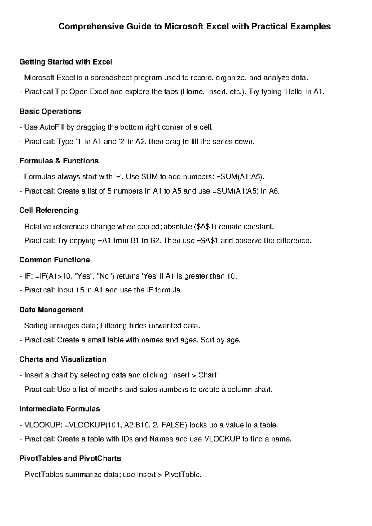 Free Excel Cheat Sheet (Printable Guide) - Printables for Everyone