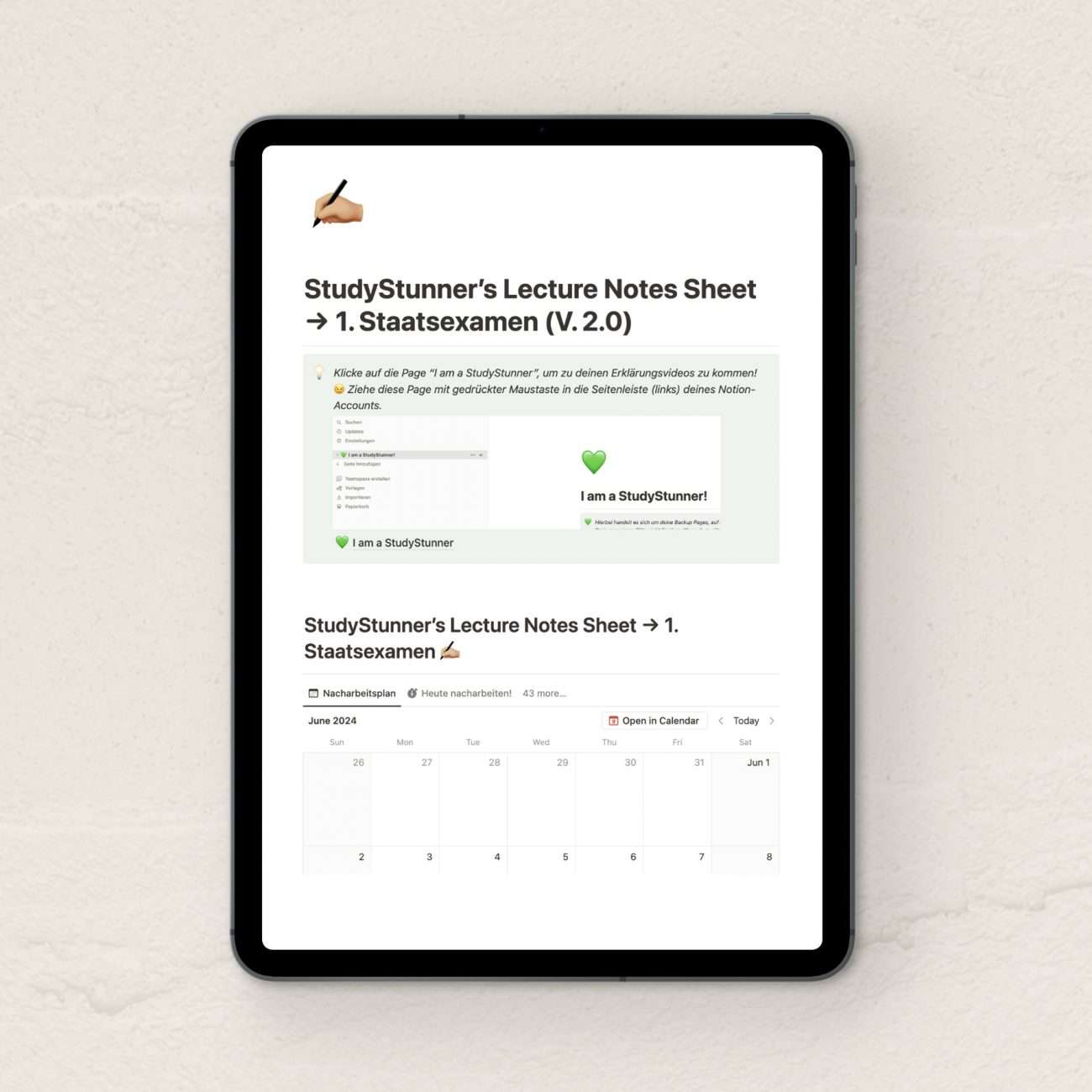 Lecture Note Sheet - 1. Staatsexamen - StudyStunner | Academy