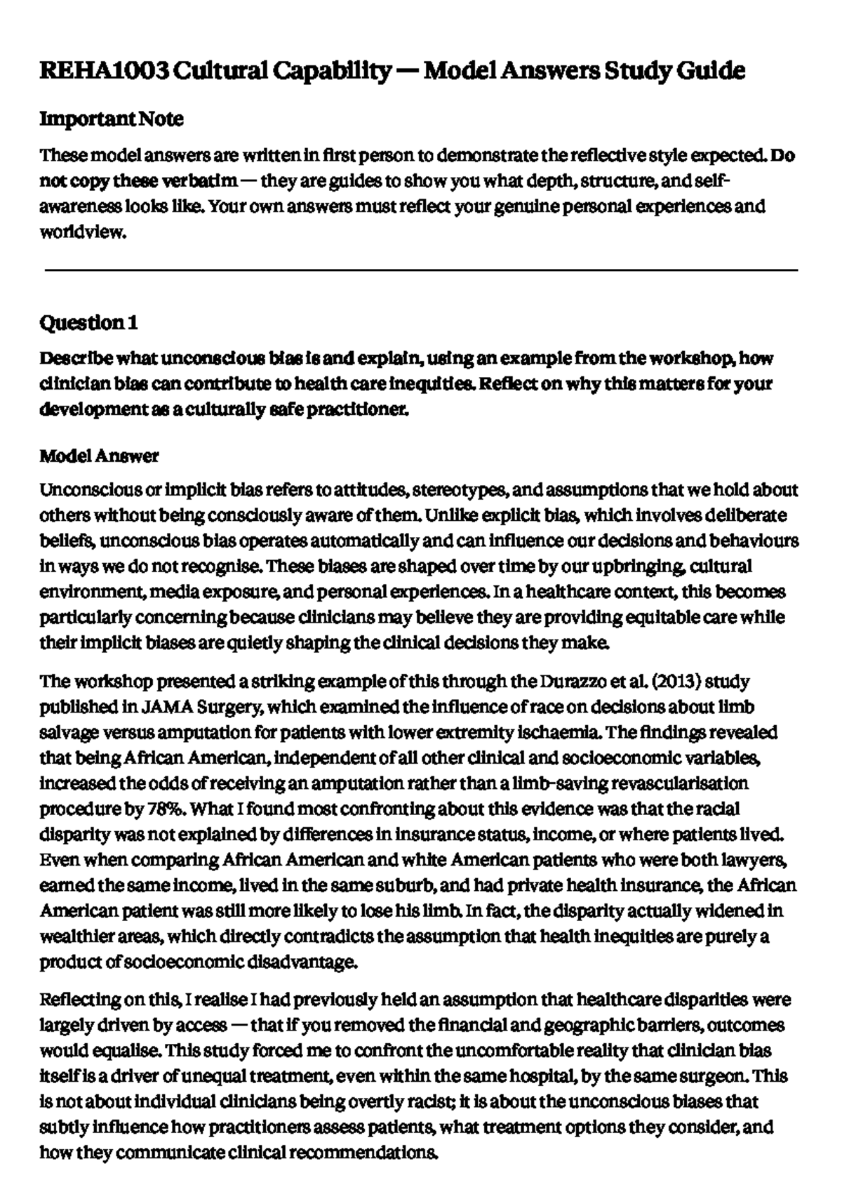 REHA1003 Cultural Capability Model Answers Study Guide - Studocu