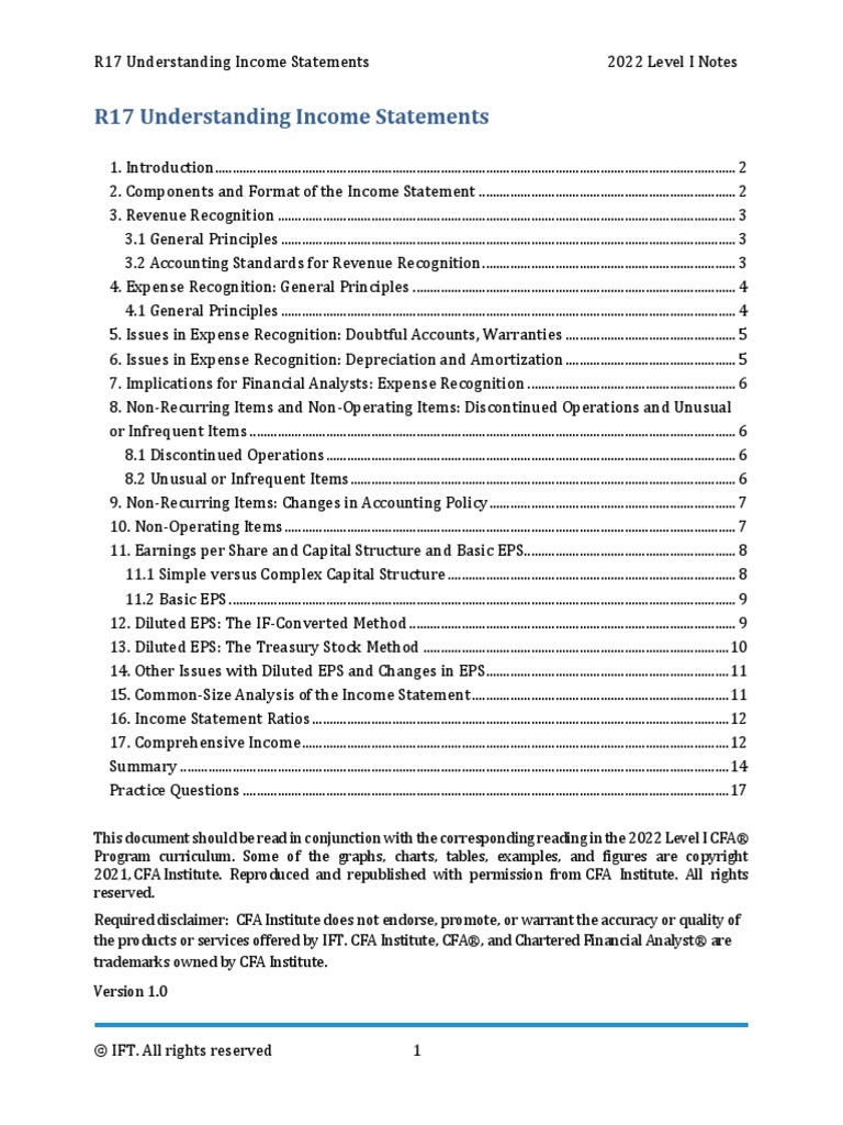 R17 Understanding Income Statements IFT Notes | PDF | Income Statement ...