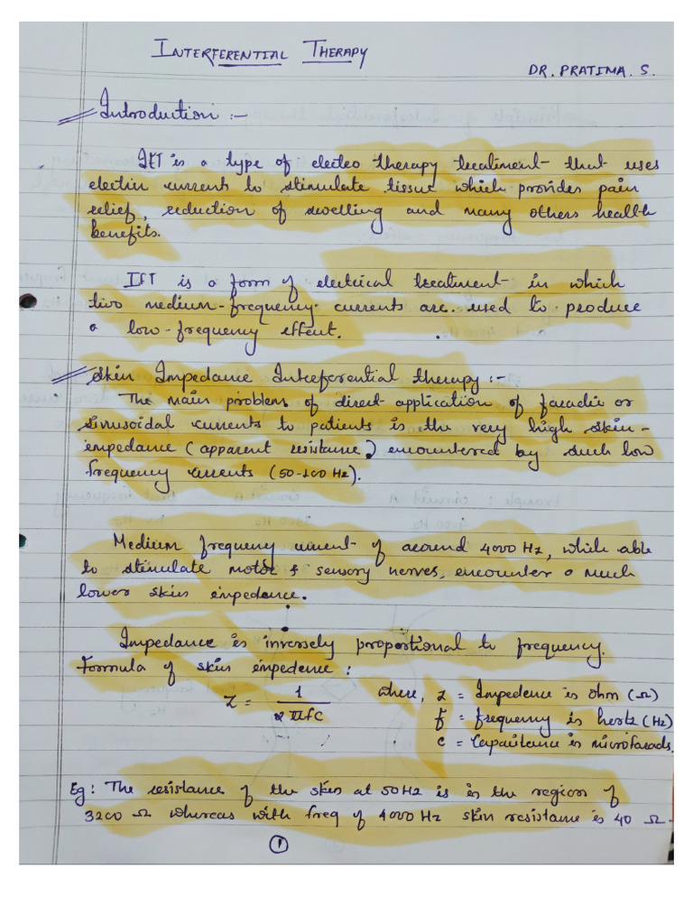 Interferential Therapy (Ift) Handwritten Notes PDF | PDF