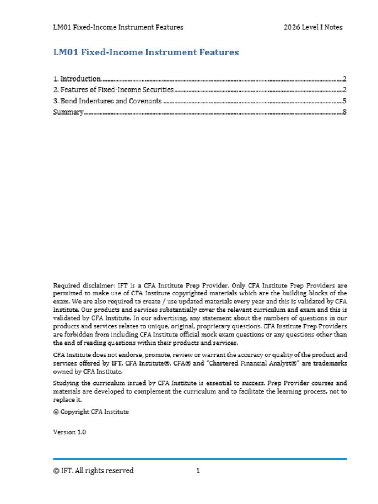 Fixed - CFA Level 1, IfT Notes 2025 | PDF