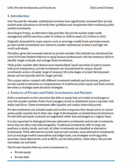CFA 2026 IFT Study Notes Level 3 Private Market Pathway