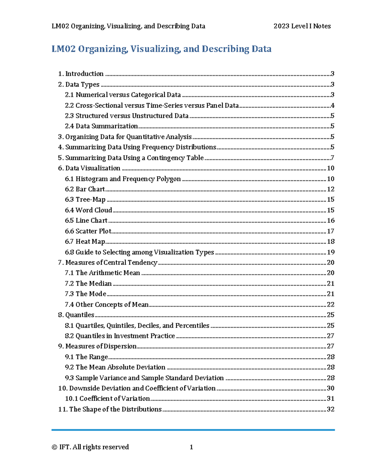 LM02 Data Organization & Visualization Techniques IFT Study Notes - Studocu