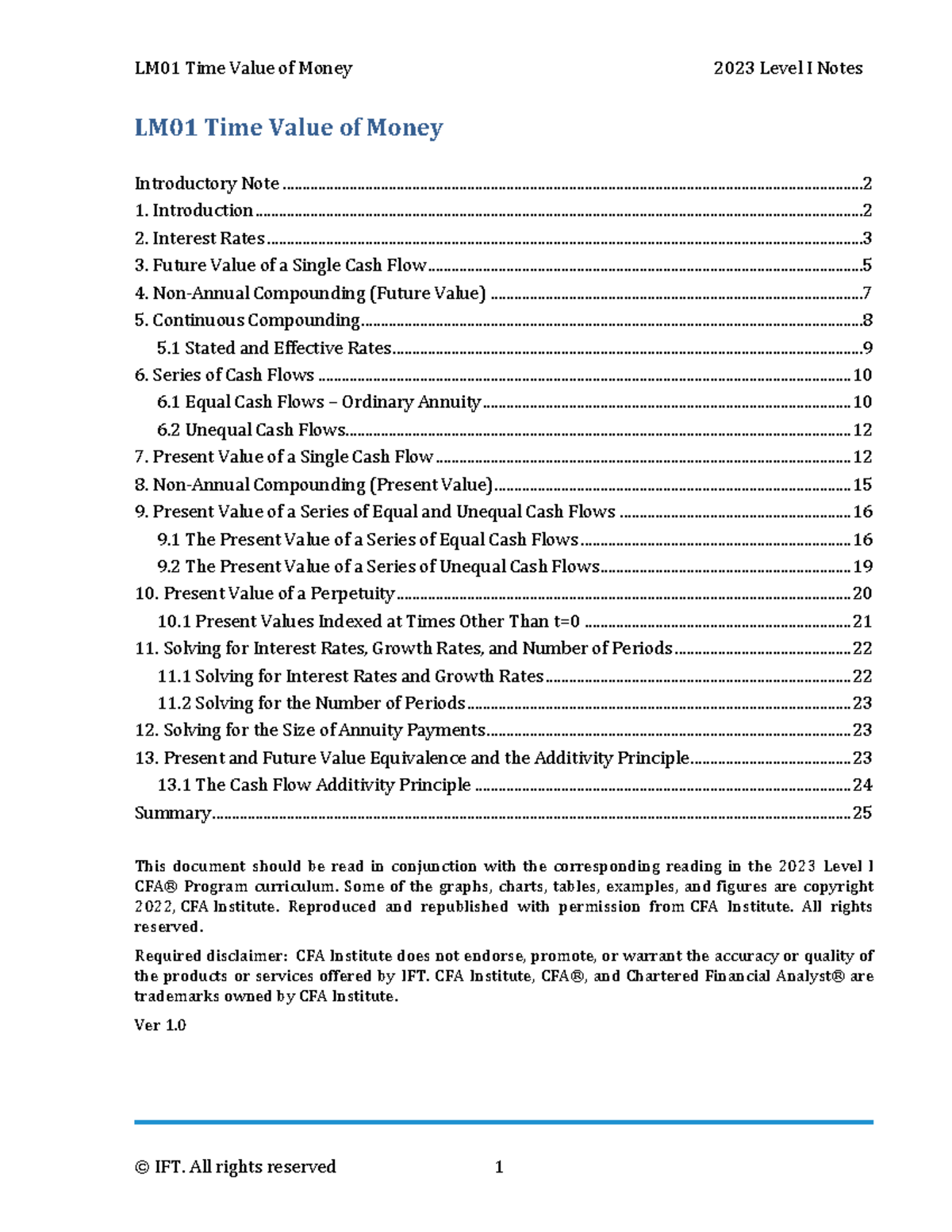 LM01 Time Value of Money - Comprehensive IFT Study Notes - Studocu