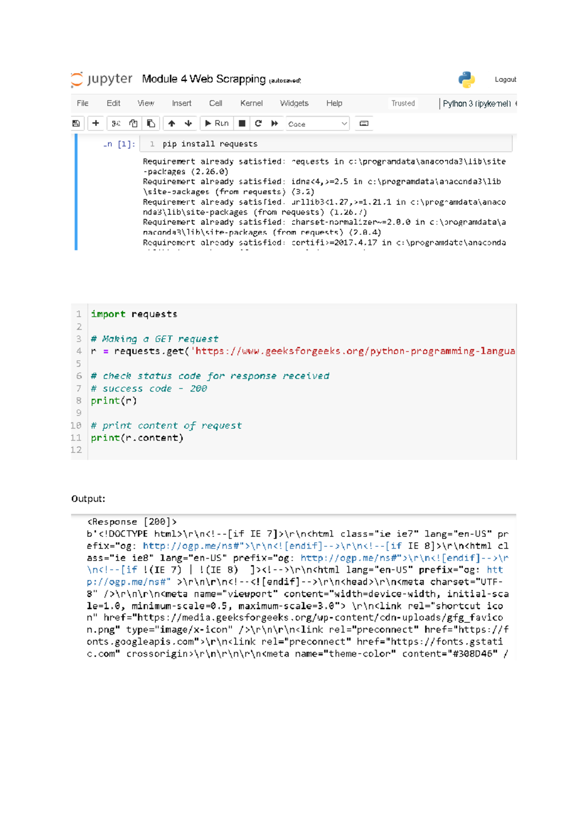 Module 4 Web Scraping Snapshots and Code Examples - Studocu