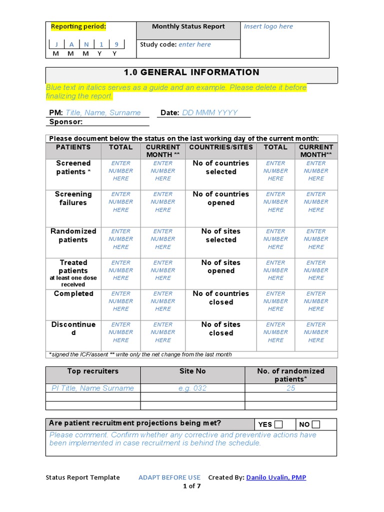 Monthly Clinical Study Status Report | PDF | Risk | Computing