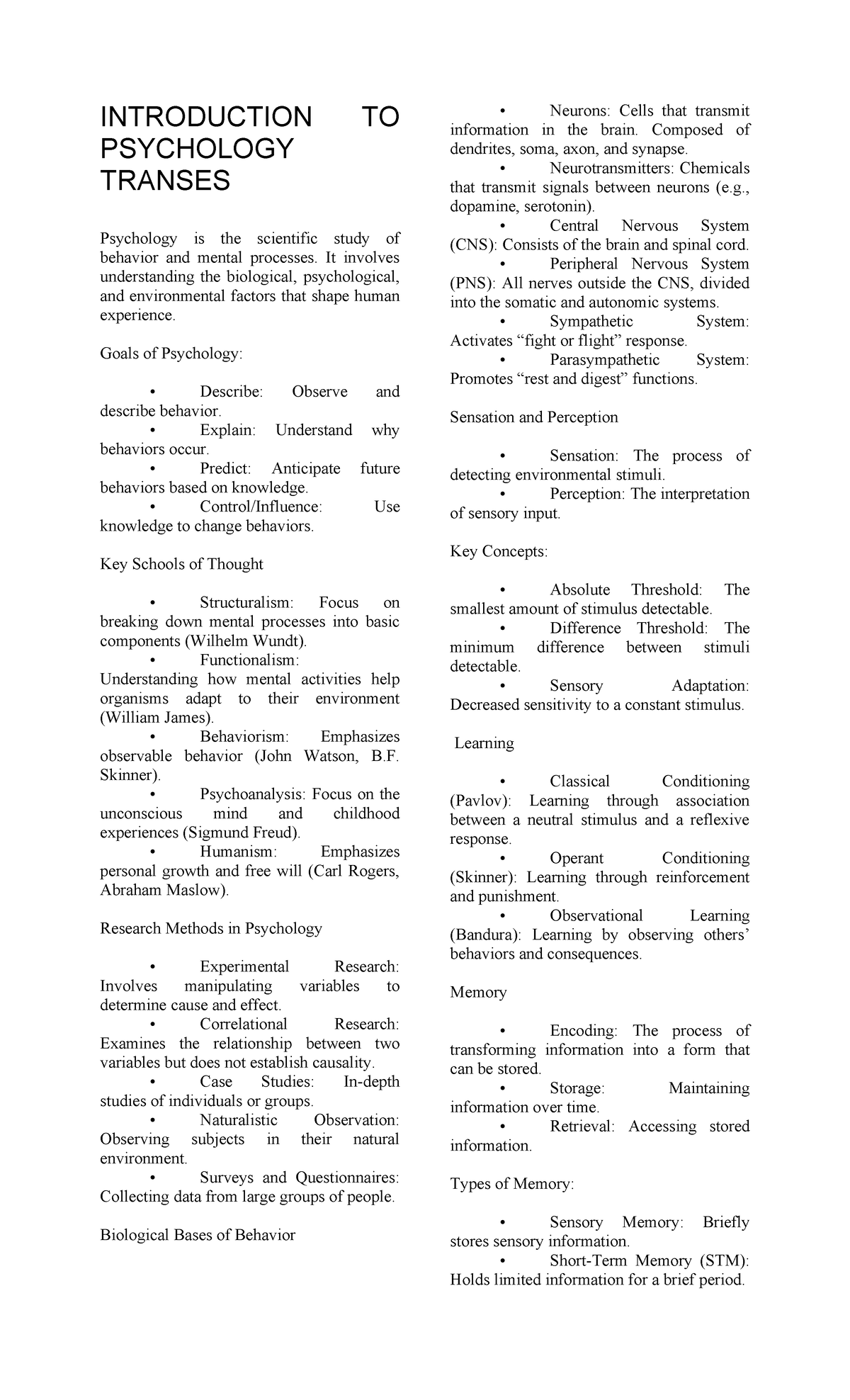 Introduction TO Psychology - INTRODUCTION TO PSYCHOLOGY TRANSES ...