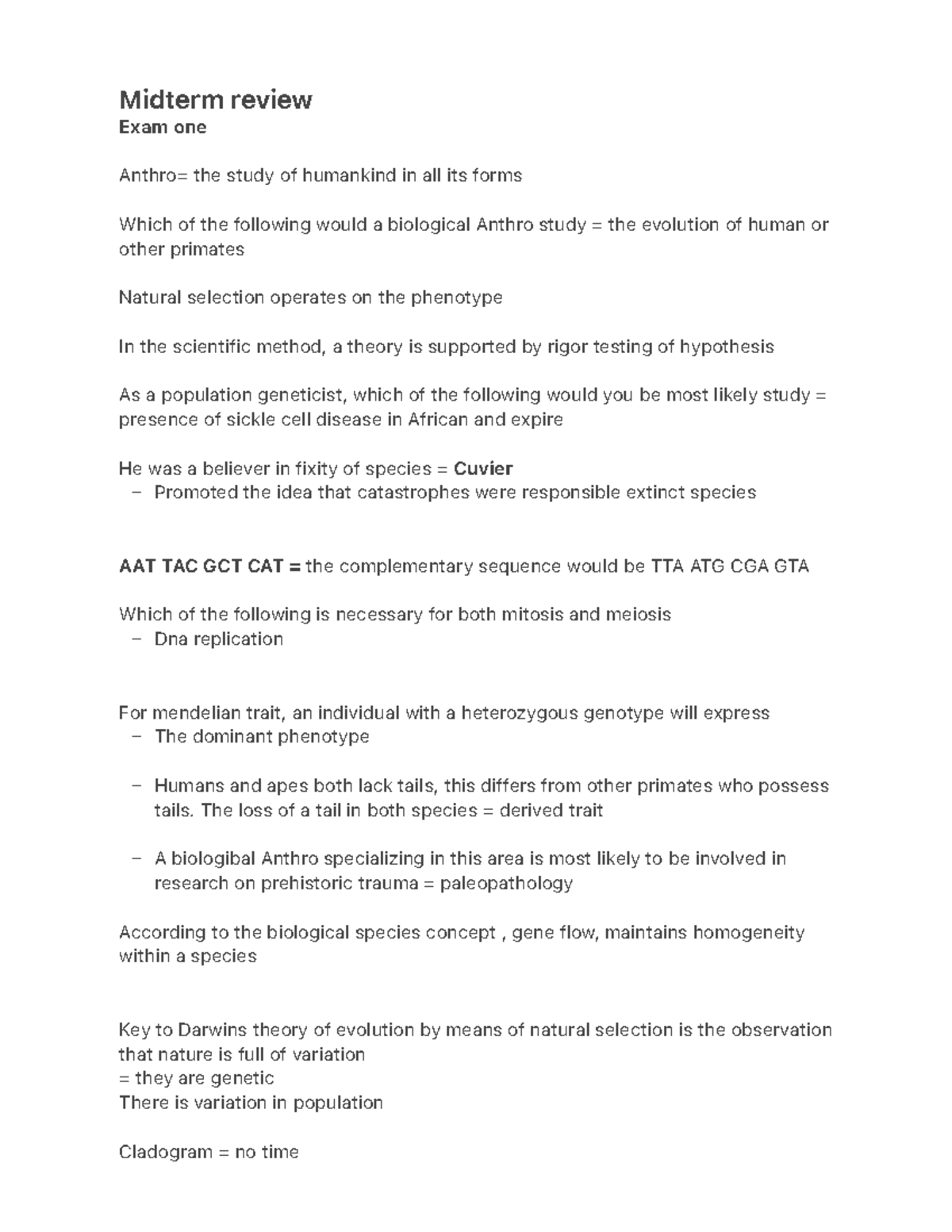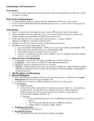 Exam #1 - Lecture notes First set of notes - Anthropology - The study ...