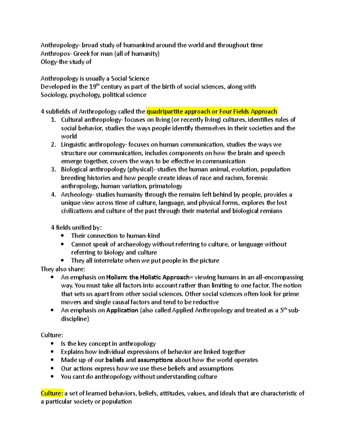 Anthropology notes taking 3 - Anthropology The study of humankind in ...