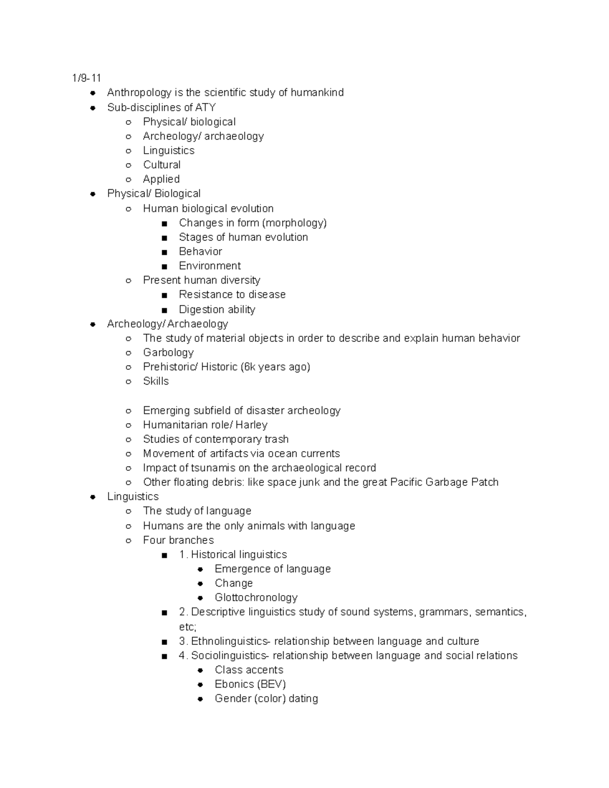 Anthro 1026 Notes - Anthropology: The study of humankind, past and ...