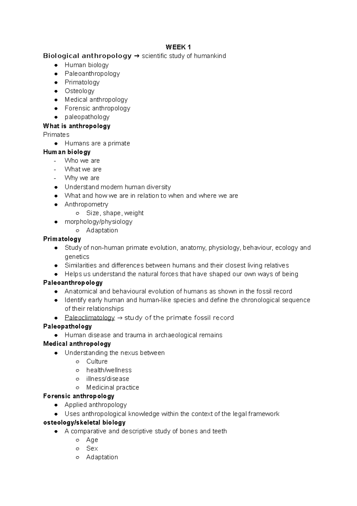 ANTH1120 notes - WEEK 1 Biological anthropology → scientific study of ...
