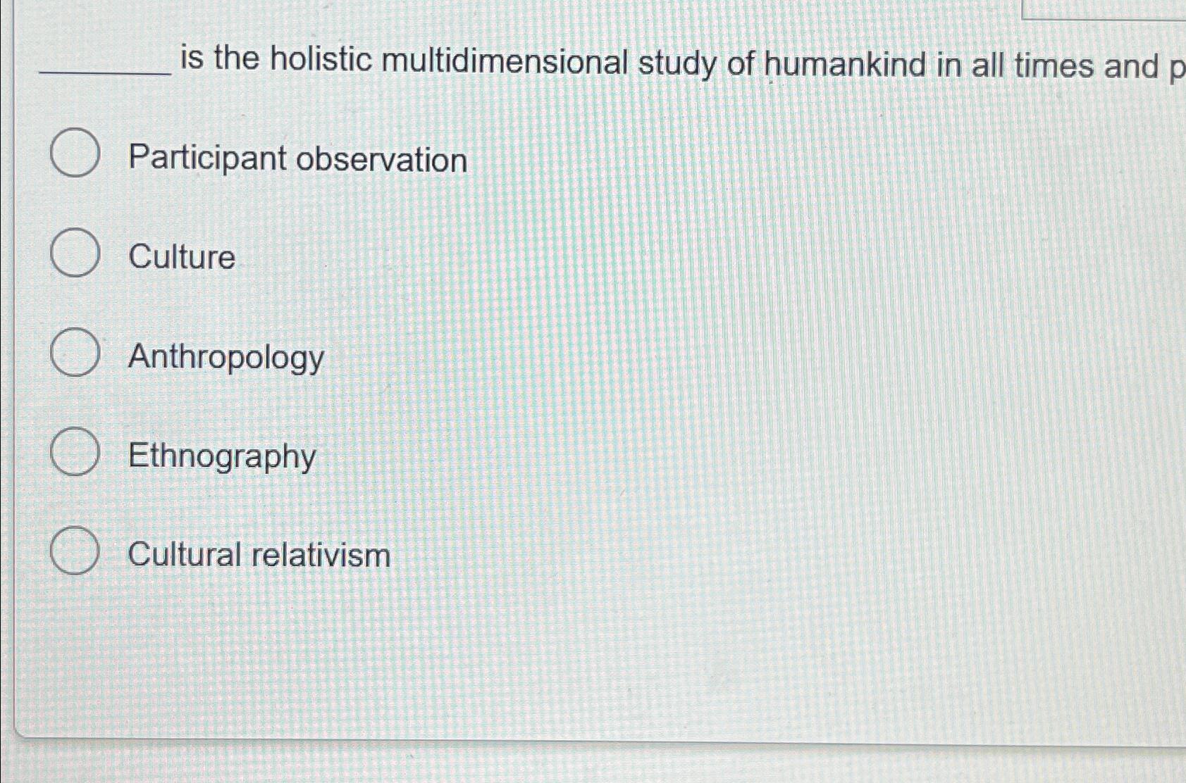 Solved is the holistic multidimensional study of humankind | Chegg.com