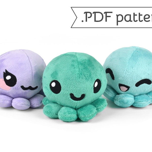 Octopus Plush SEWING PATTERN, Reversible Octopus PDF Pattern, Plushie ...