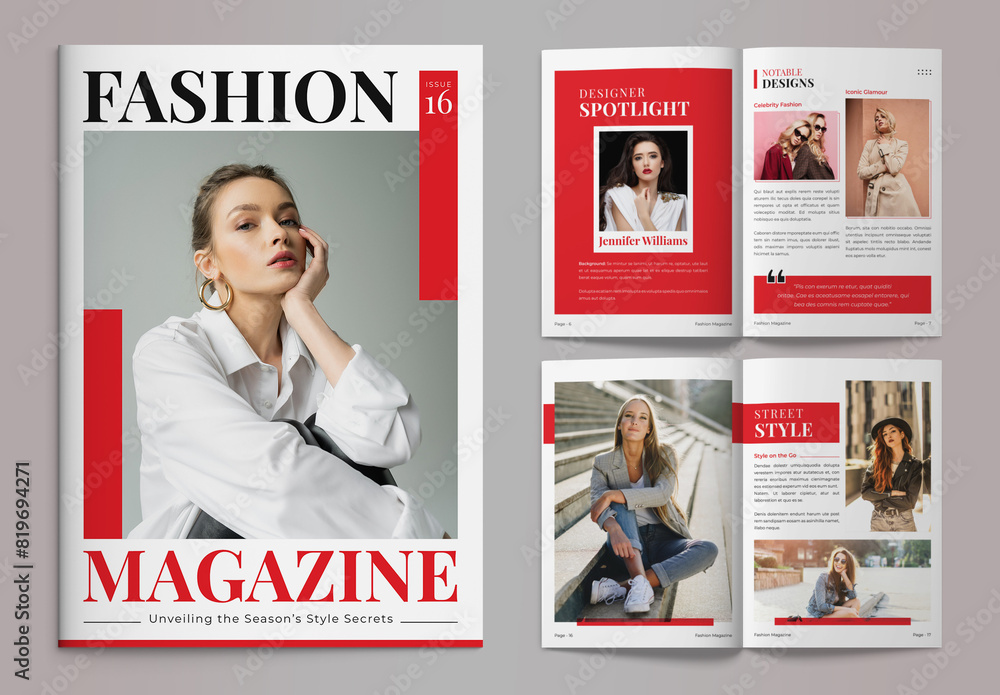 Fashion Magazine With Red Accents Layout Stock Template | Adobe Stock