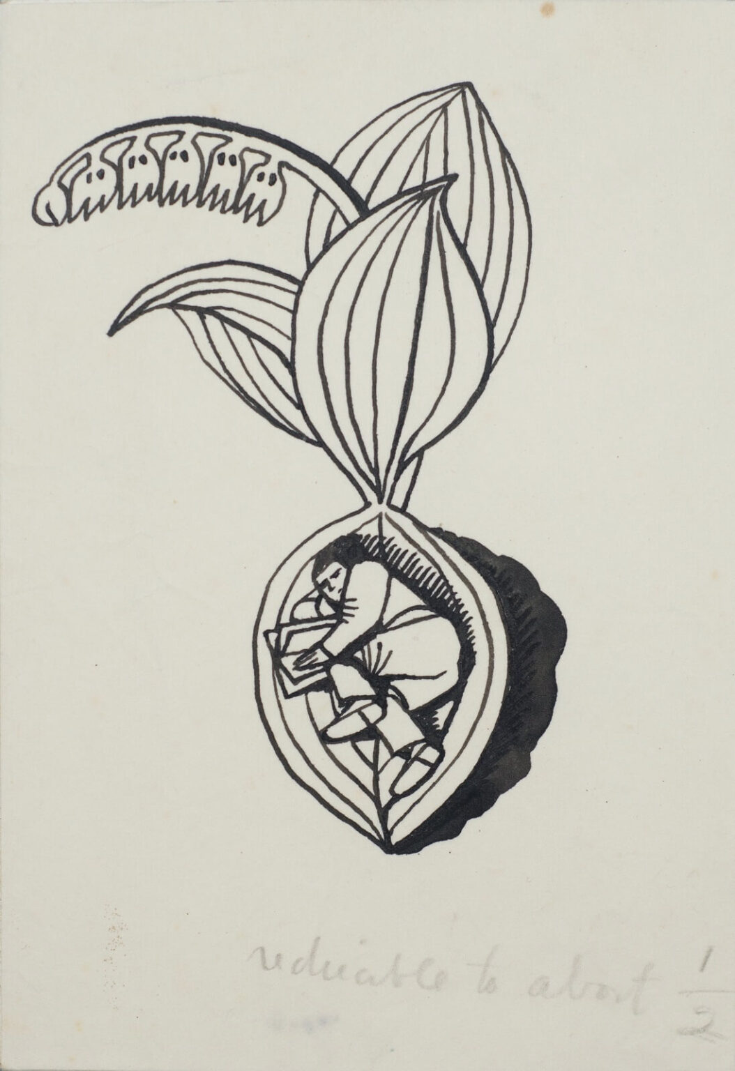 Vignette of unknown purpose featuring a figure reading on a stylised ...