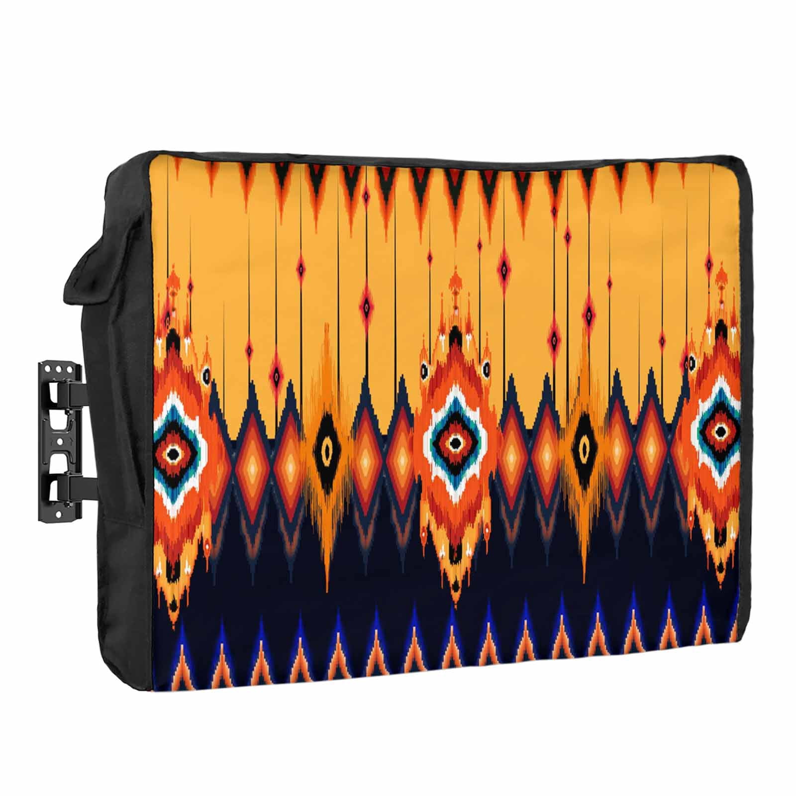 Aztec Ethnic Style Waterproof Outdoor TV Cover, Orange Black Argyle ...